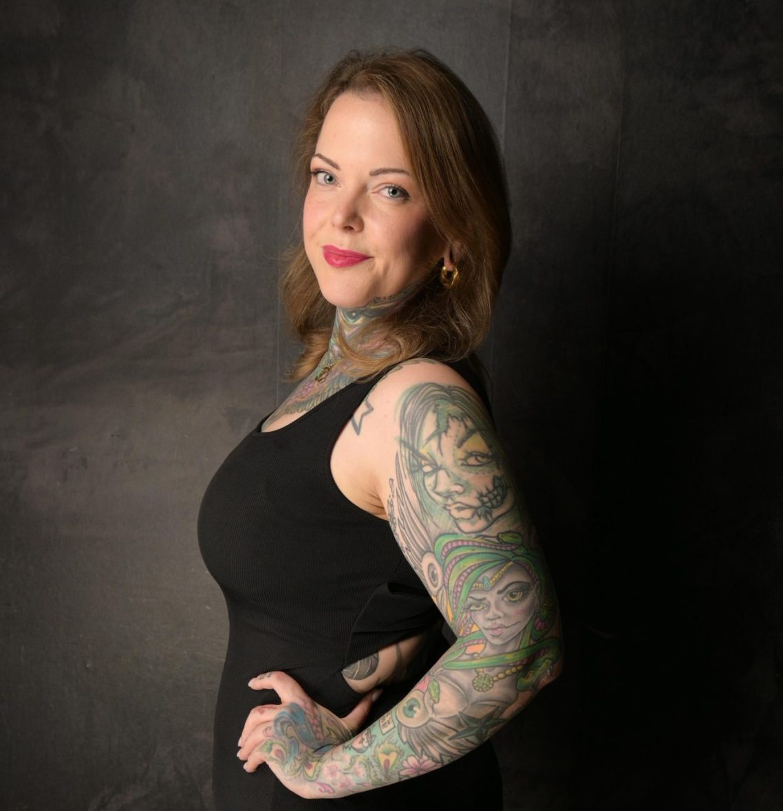 Heute tätowiert Anne seit über 15 Jahren und ist spezialisiert auf realistische Tattoos in Farbe und Black & Grey sowie auf aufwendige Cover Ups. Realistic ist für sie die Königsdisziplin, weil dabei Geschichten und Emotionen so umgesetzt werden, dass sie dauerhaft auf der Haut weiterleben. Bei Cover Ups geht es ihr vor allem darum, Menschen einen echten Neuanfang zu ermöglichen. Wichtig sind ihr ein Ergebnis, das nicht nur frisch gestochen überzeugt, sondern auch nach Jahren noch stark wirkt: mit Tiefe, Kontrast und einer harmonischen Platzierung.